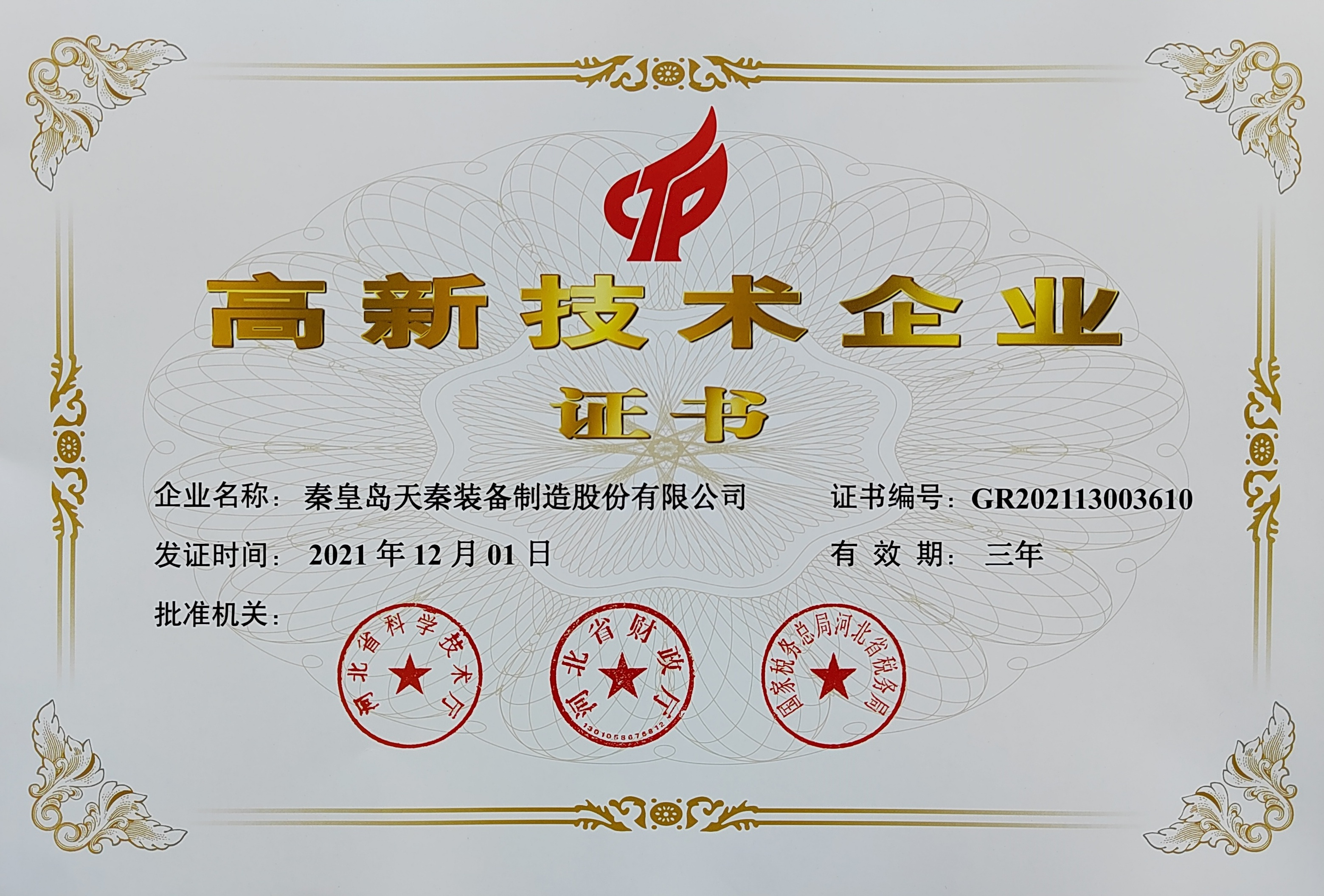 • 秦皇島天秦裝備制造股份有限公司創(chuàng)立于1996年,總部位于河北省秦皇島市經(jīng)濟(jì)技術(shù)開發(fā)區(qū),秦皇島廠區(qū)占地4萬(wàn)平方米,擁有3萬(wàn)平方米的標(biāo)準(zhǔn)廠房、辦公樓和工程技術(shù)研發(fā)中心;分部天津廠區(qū)位于天津市靜海經(jīng)濟(jì)開發(fā)區(qū),占地2萬(wàn)平方米,擁有1.6萬(wàn)平方米標(biāo)準(zhǔn)廠房。 公司通過(guò)了GB/T 19001質(zhì)量管理體系及GB/T 24001環(huán)境管理體系認(rèn)證,是國(guó)家高新技術(shù)企業(yè)、河北省軍民融合產(chǎn)學(xué)研用創(chuàng)建基地,建有省級(jí)院士工作站。